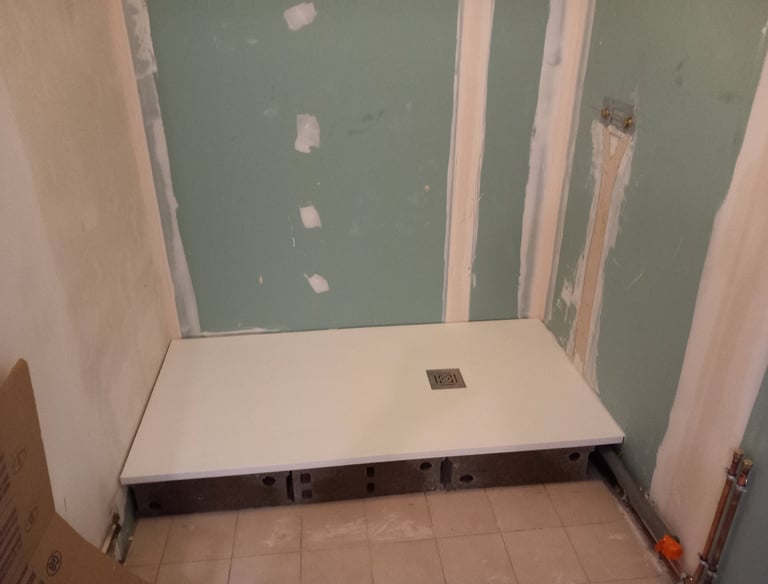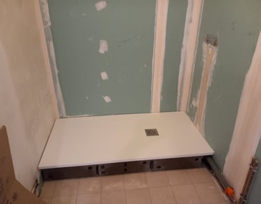 Mise en place de douches, baignoires et vasques avec une attention précise aux assemblages, pour un espace d’eau harmonieux